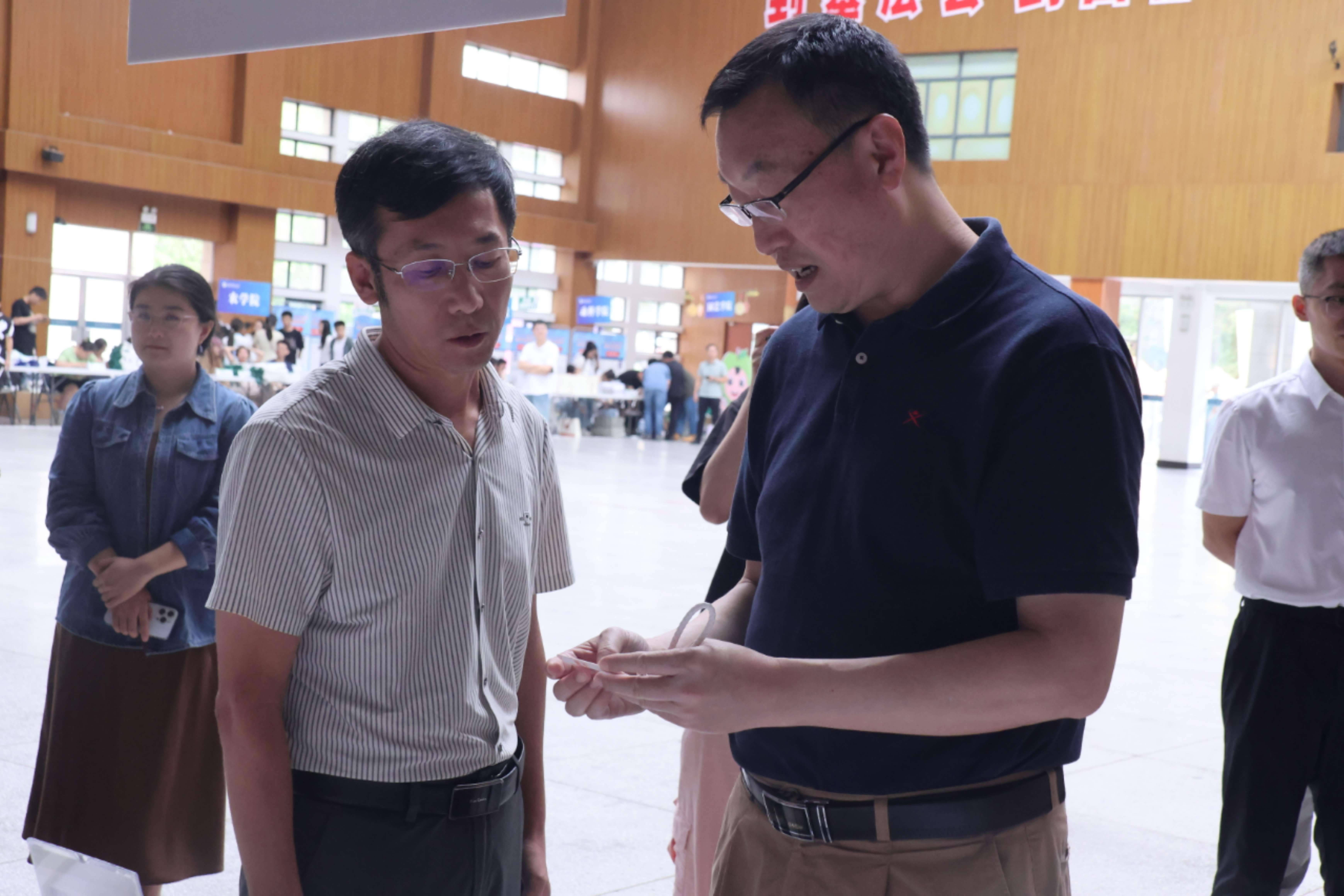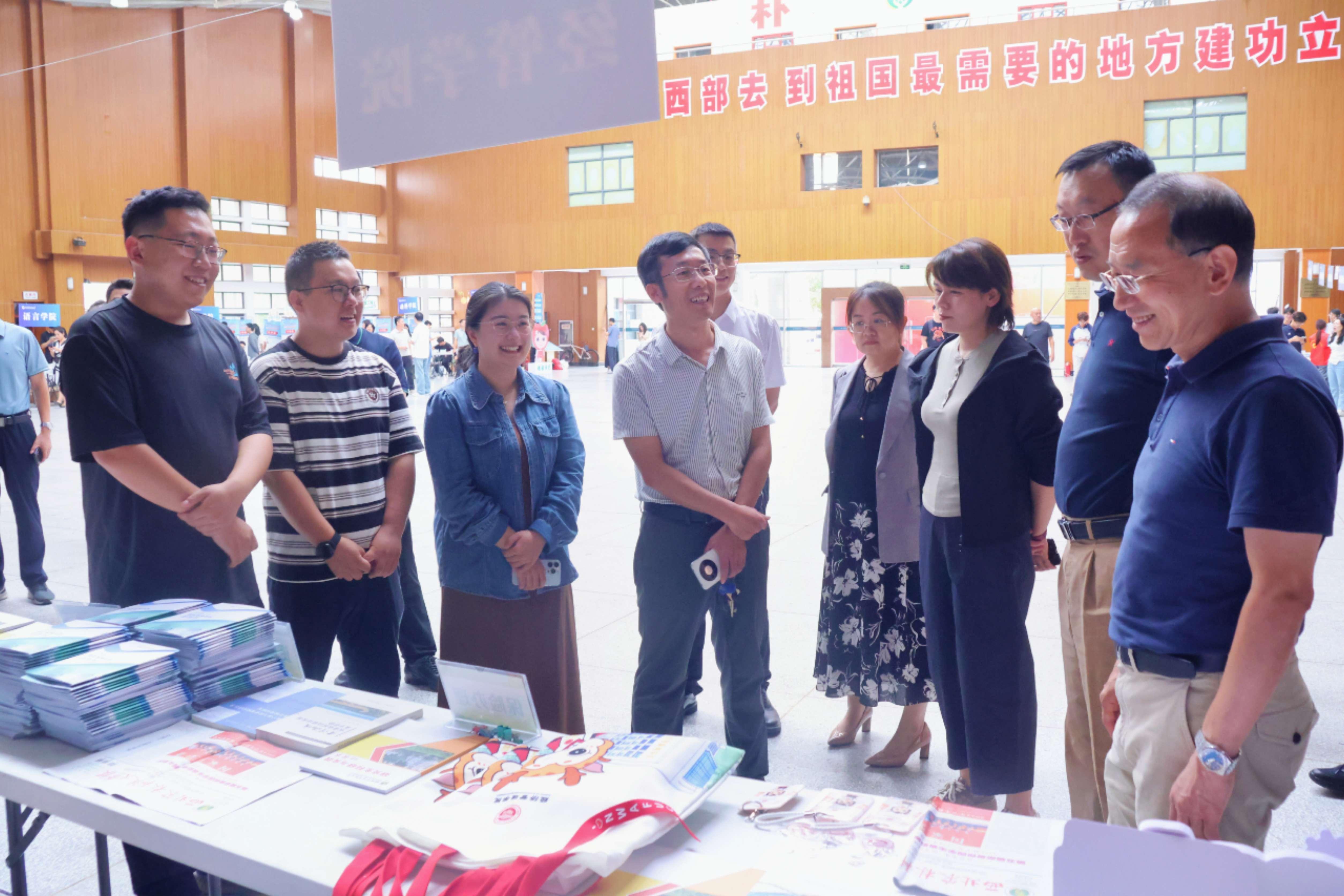 今日下午,校领导郑英宁、闫祖书一行亲临迎新报到现场,细致检查布置进展,与学院副书记张军驰、辅导员吴龙刚、王晓赫、郭昊晨展开深入交流,详细了解迎新流程安排和物资准备情况,并慰问研究生会志愿者团队,对学院细致有序的准备工作予以肯定,力求为新生打造一场温暖、有序、高效的入学体验。