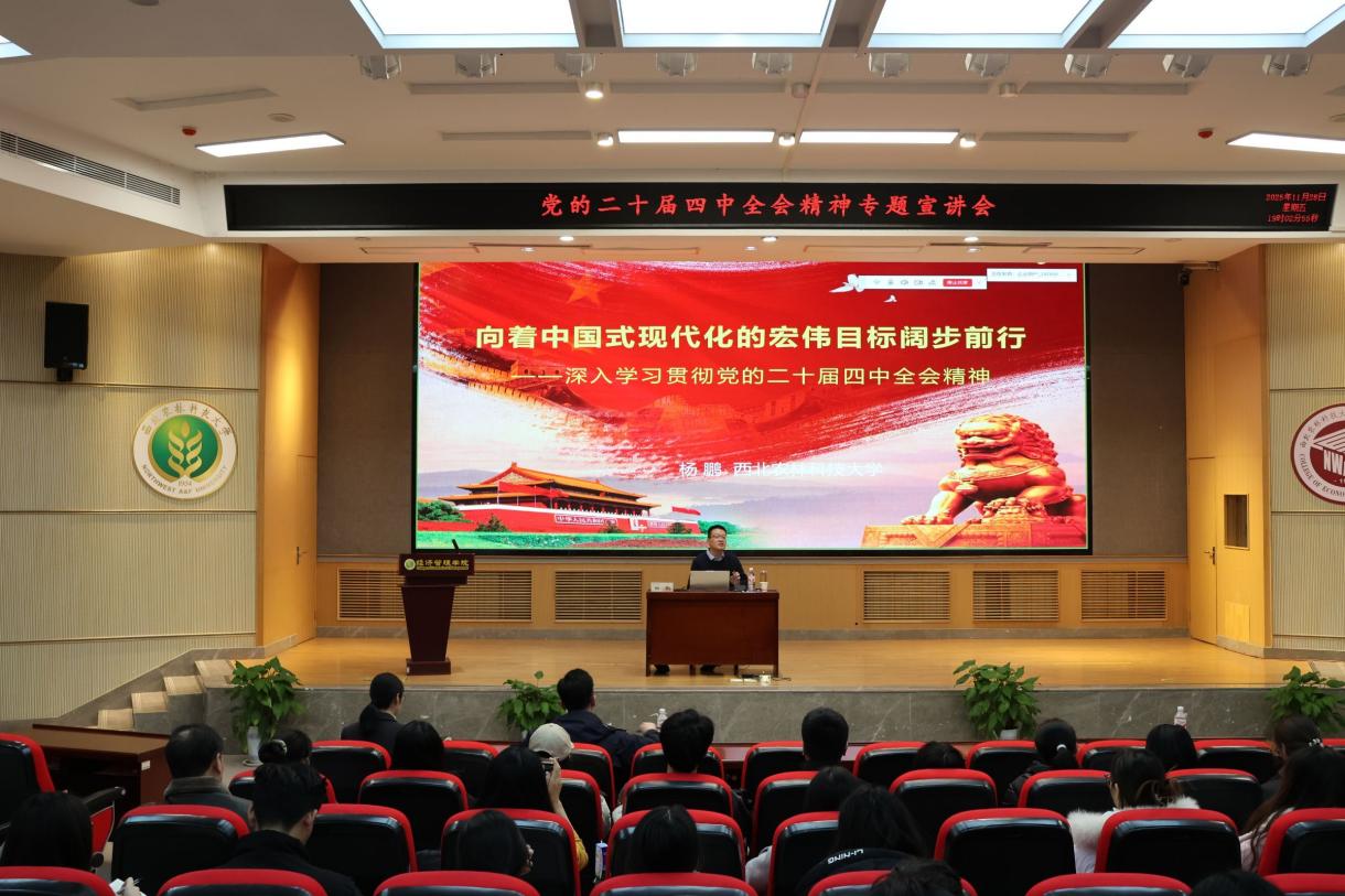 党的二十届四中全会是向第二个百年奋斗目标进军关键节点的重要会议,擘画了“十五五”蓝图,锚定了中国式现代化发展航向。为深入学习贯彻党的二十届四中全会精神,11月28日,bwin必赢唯一官方网站第二十六期团分校第五次团课于C101成功举行。本次团课特邀马克思主义学院杨鹏教授作题为“向着中国式现代化的宏伟目标阔步前行——党的二十届四中全会精神宣讲”的报告。团分校全体学员共同学习。