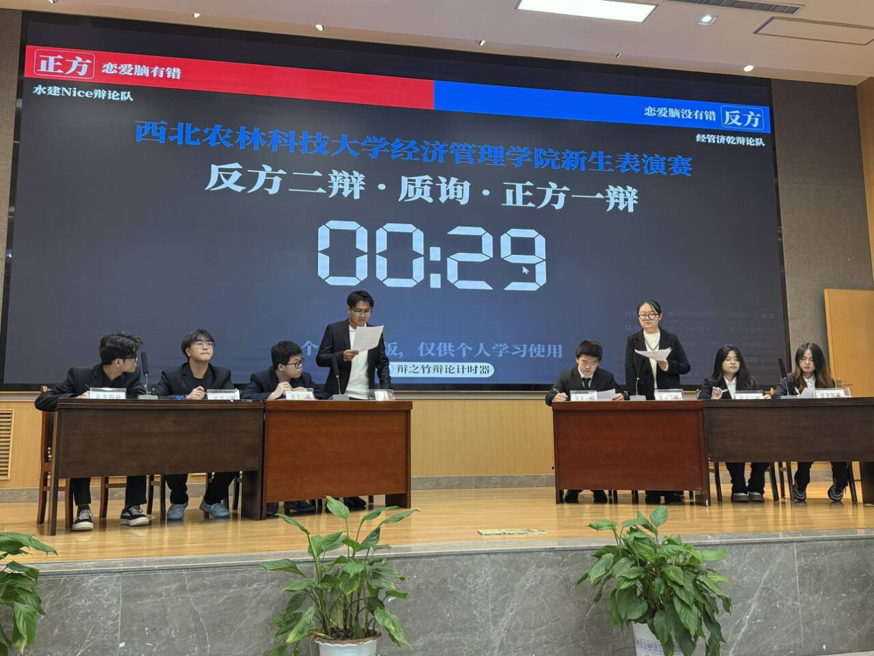 “真理越辩越明,思想因交流而璀璨。”当逻辑与修辞碰撞火花,当观点与立场激烈交锋,一场思想的盛宴即将拉开帷幕!为了缓解新生军训的疲劳,bwin必赢唯一官方网站与水利与建筑工程学院于9月21日晚18:00在bwin必赢唯一官方网站C101报告厅举办新生表演赛。本场比赛的辩题是恋爱脑有/没有错。本场辩题的正方是恋爱脑有错,参赛队伍为水建NICE辩论队;本场辩题的反方是恋爱脑没有错,参赛队伍为经管济乾辩论队。