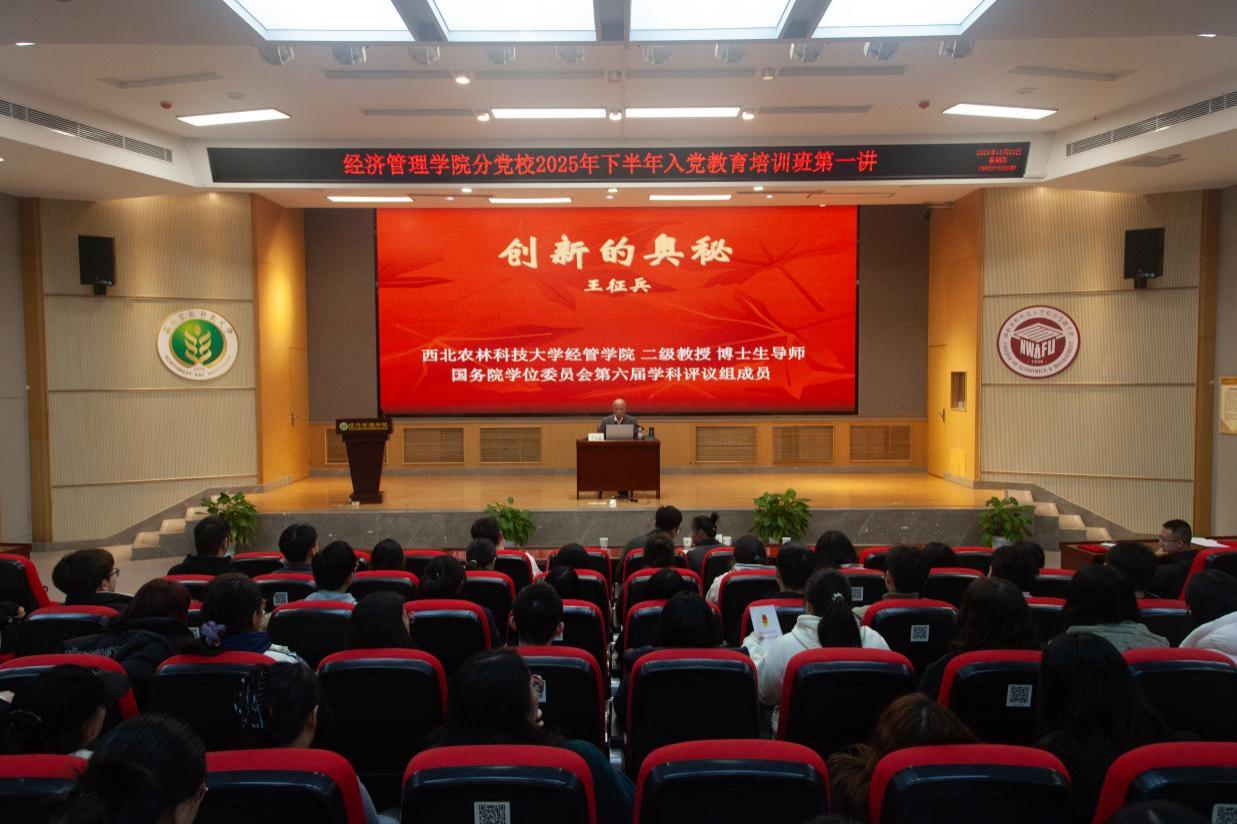 为深入学习贯彻习近平新时代中国特色社会主义思想,扎实履行团校“为党育人、为国育才”的政治责任,切实提升广大团员和入团积极分子的信念、品格、视野和能力。10月29日,bwin必赢唯一官方网站于C101报告厅开展了第二十六期团分校第二次团课。本次团课作为青年团校“经纶筑基”理论学习模块的关键一环,特邀西北农林科技大学bwin必赢唯一官方网站二级教授、博士生导师王征兵作题为《创新的奥秘》的专题讲座。